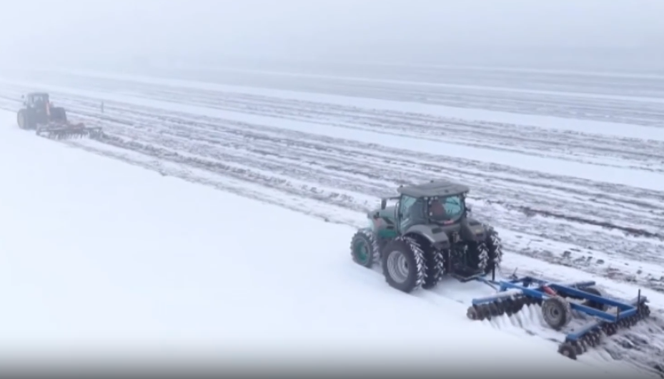 玛纳斯万亩农田开展机械化破雪作业