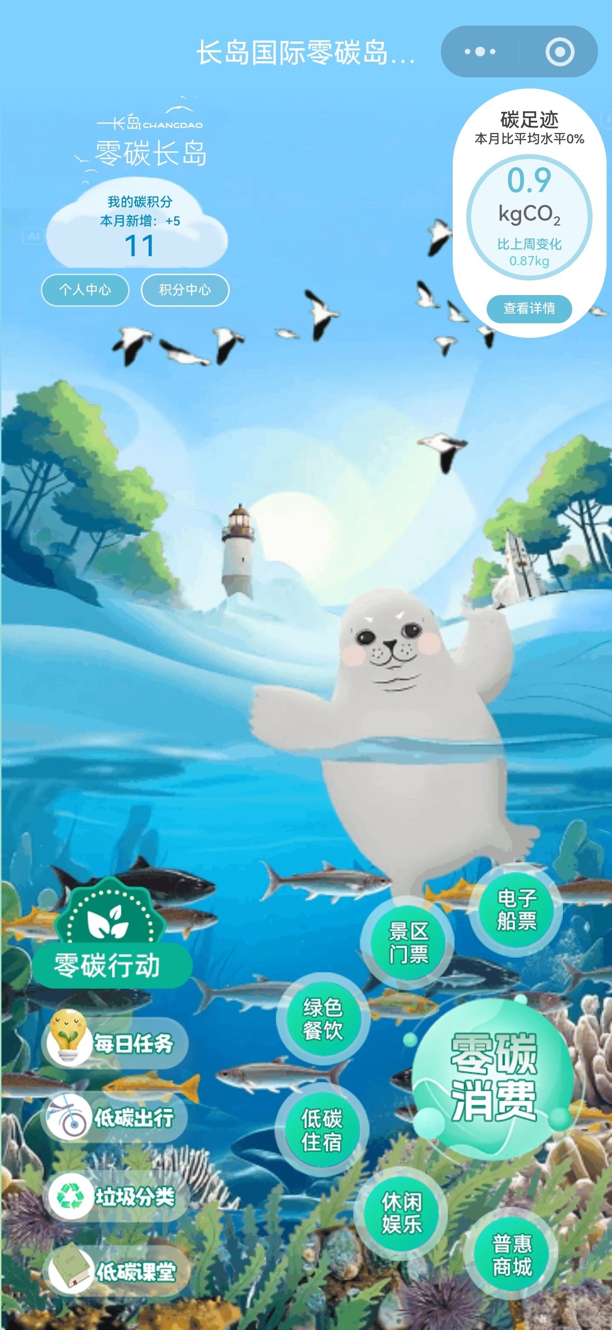 10:00,游客李女士在南长山岛的林海峰景区入口,打开手机里的“长岛国际零碳岛普惠平台”购买了一张门票,刷入闸机,便开始步行游览。游览结束后,她的步行里程自动转为了碳积分。这些积分可以直接在消费时抵扣现金。在碳积分AI算法的自动核算下,低碳行为变成了实实在在的激励。