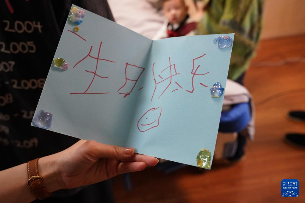 这是邓先生通过脑机接口控制外骨骼手写的生日祝福贺卡(3月28日摄)。新华社记者 周密 摄