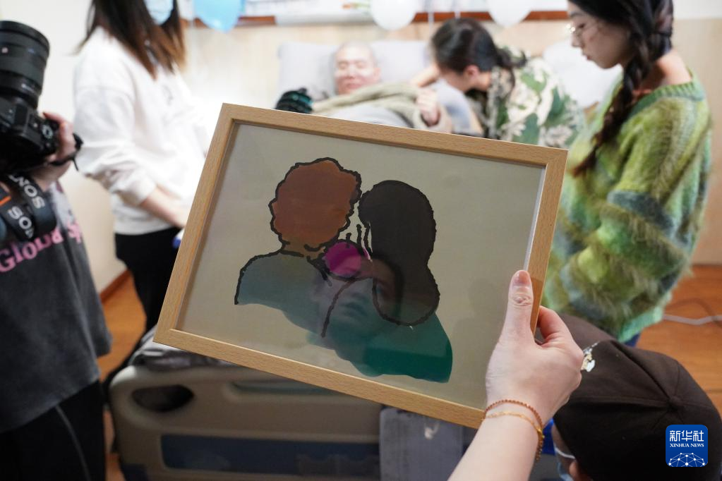 这是邓先生通过脑机接口控制外骨骼绘制的全家福(3月28日摄)。新华社记者 周密 摄