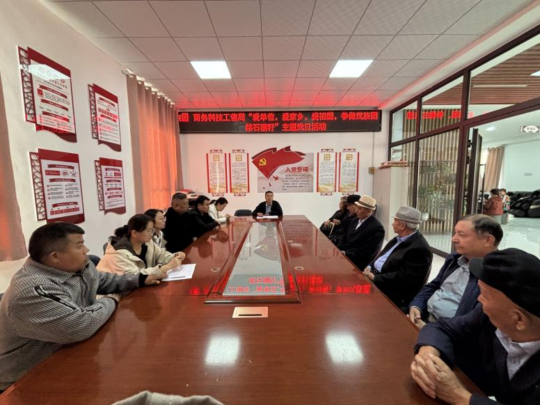 为深化党员干部思想政治建设,创新主题党日形式,近日,阿瓦提县商务科技工信局组织退休与在职党员开展“爱单位、爱家乡、爱祖国争做民族团结石榴籽”“弘扬孝亲敬老美德共建老年友好社会”双主题党日活动。通过理论共学、座谈交流、政策解读、实地参观等环节,凝聚老中青三代党员力量,为铸牢中华民族共同体意识注入动能。