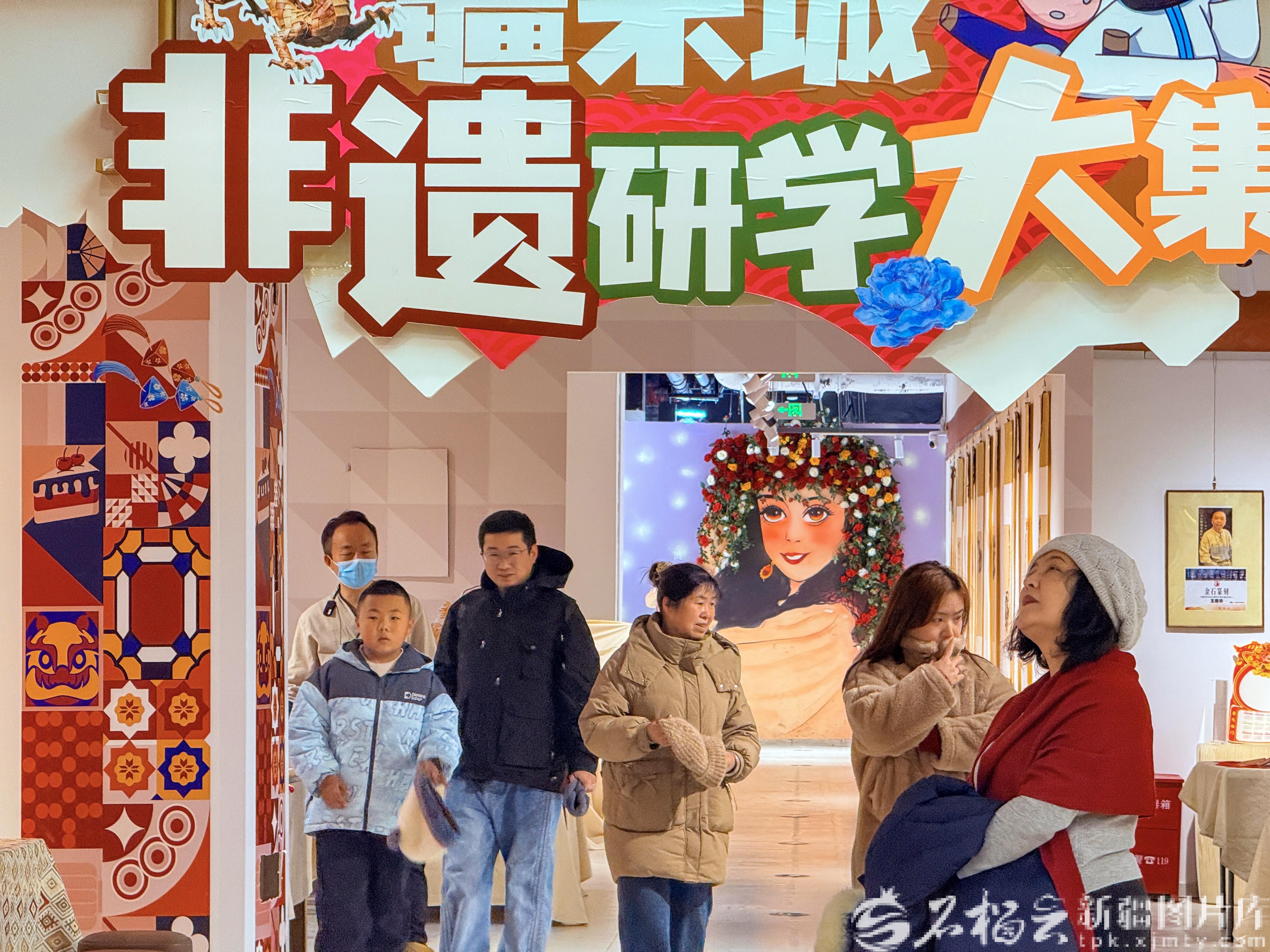 1月8日,游客在新疆国际大巴扎步行街二期疆来城非遗研学大集游览。