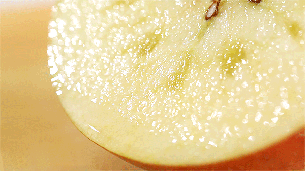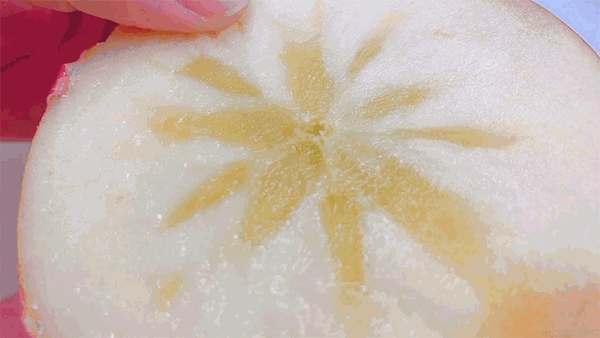 苹果的糖分便在果核处慢慢凝结