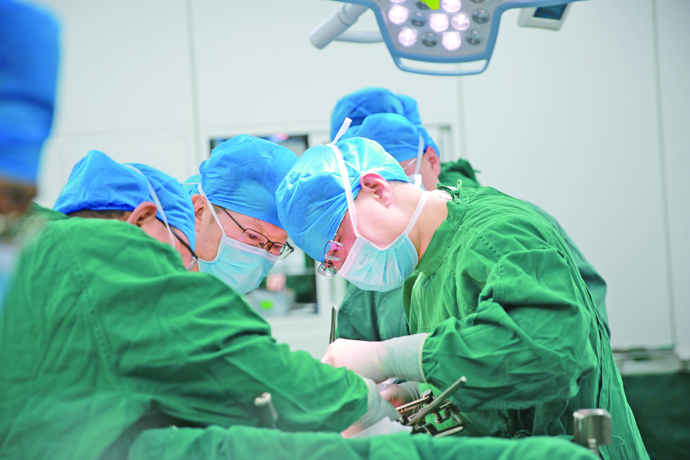 无影灯下,马涛等人全神贯注为患者做手术。