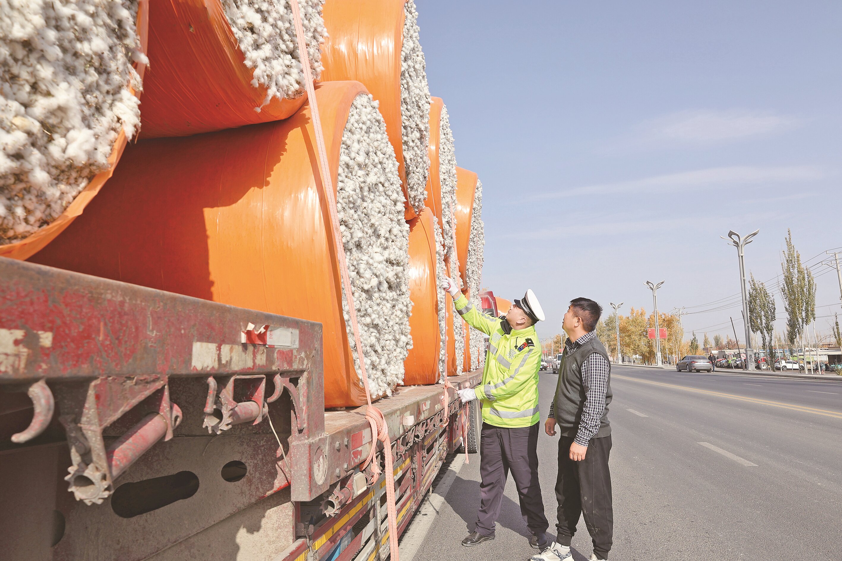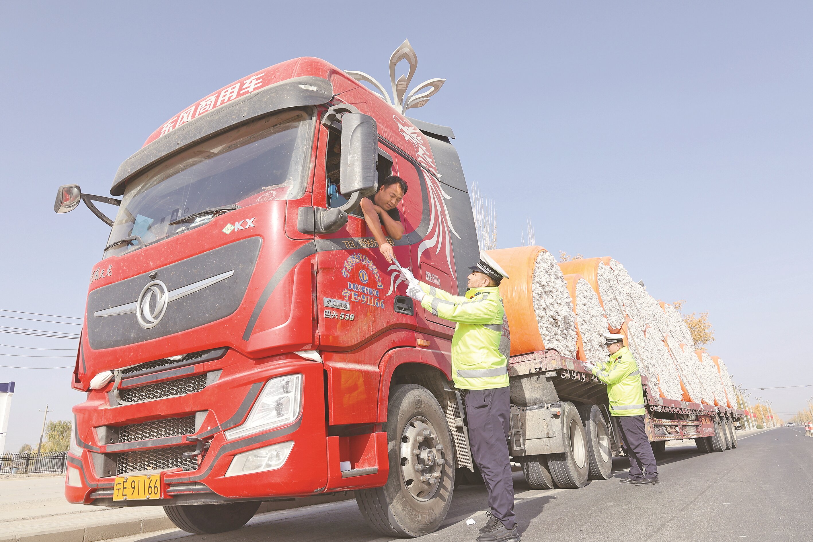 10月30日,阿瓦提县公安局交警大队民警对过往货运车辆开展安全隐患排查,切实从源头消除风险隐患,为丰收季道路交通安全筑牢坚实“防护网”。