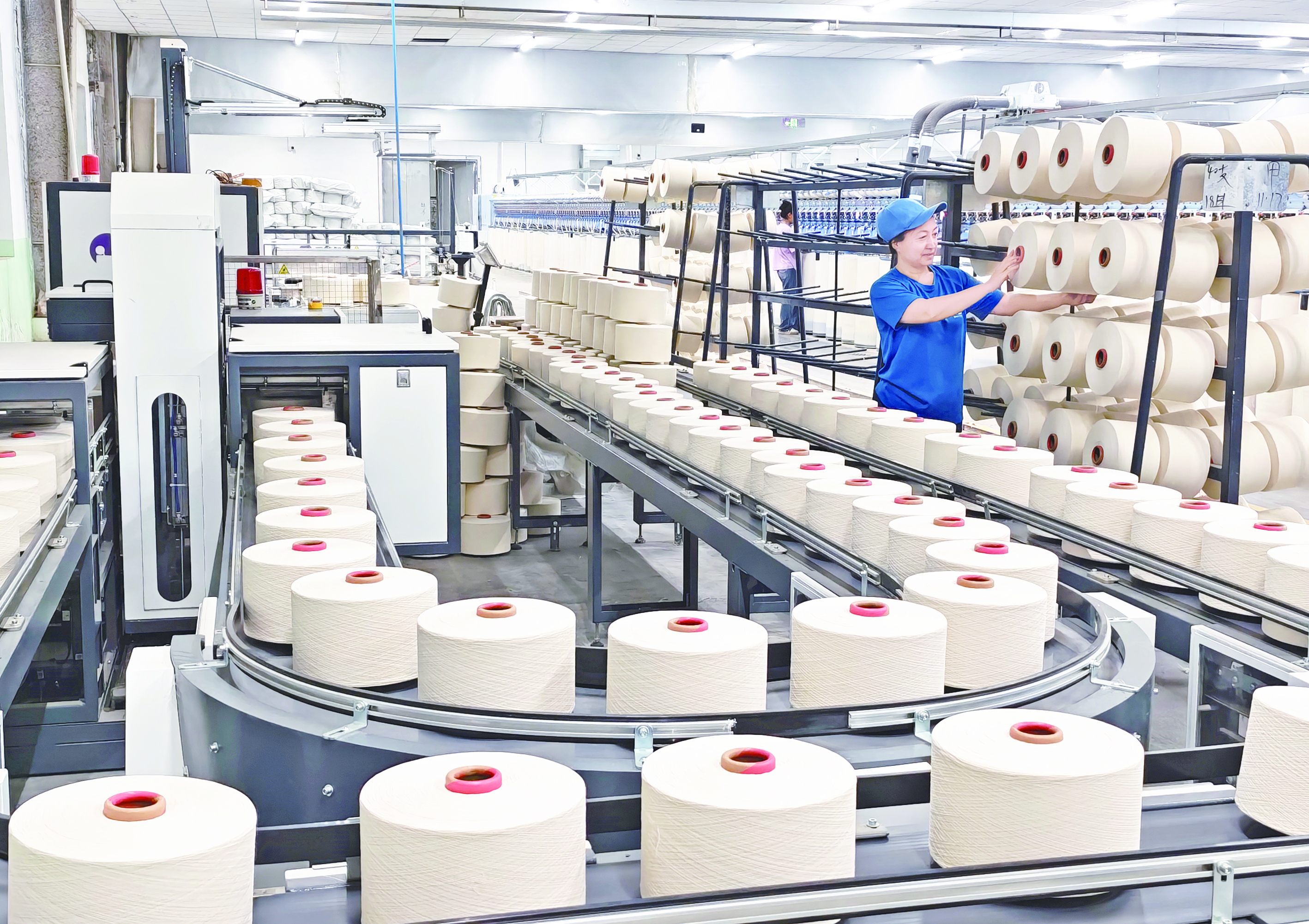 11月18日,位于阿克苏地区阿瓦提县阿瓦提镇的一家纺织企业,工人正在生产车间忙碌。连日来,该企业开足马力赶制纺纱订单,全力保障市场供应。