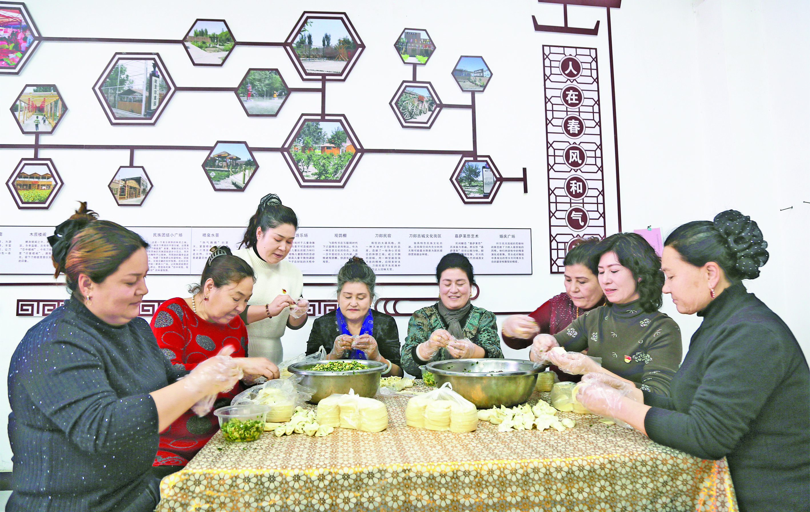12月18日,库车市应急管理局驻乌恰镇甬库振兴村工作队队员和群众一起包饺子迎冬至。 通讯员 袁欢欢 摄