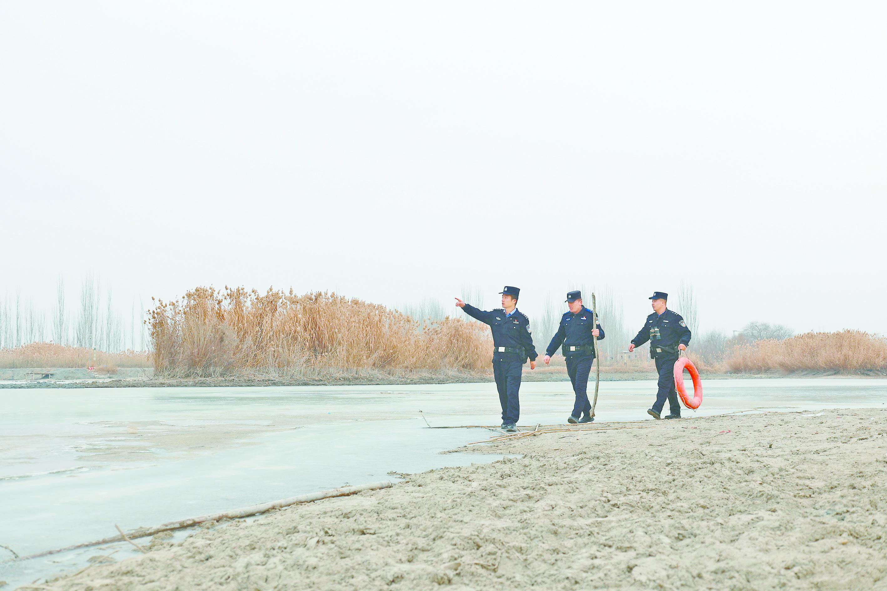 12月19日,阿克苏地区阿瓦提县公安局拜什艾日克镇派出所组织民辅警对辖区湿地、河流、池塘等重点区域开展巡查工作,旨在织密织牢冬季冰面安全防线,切实守护群众生命财产安全。