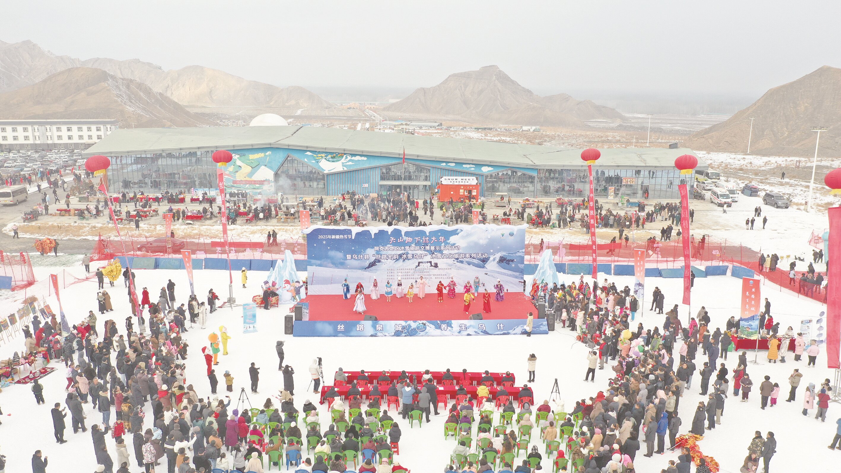 12月27日,地区“天山脚下过大年”冰雪旅游文博展示系列活动暨乌什县“丝路冬韵 冰雪乌什”冰雪文化旅游系列活动在乌什县泉域星空滑雪场启动。