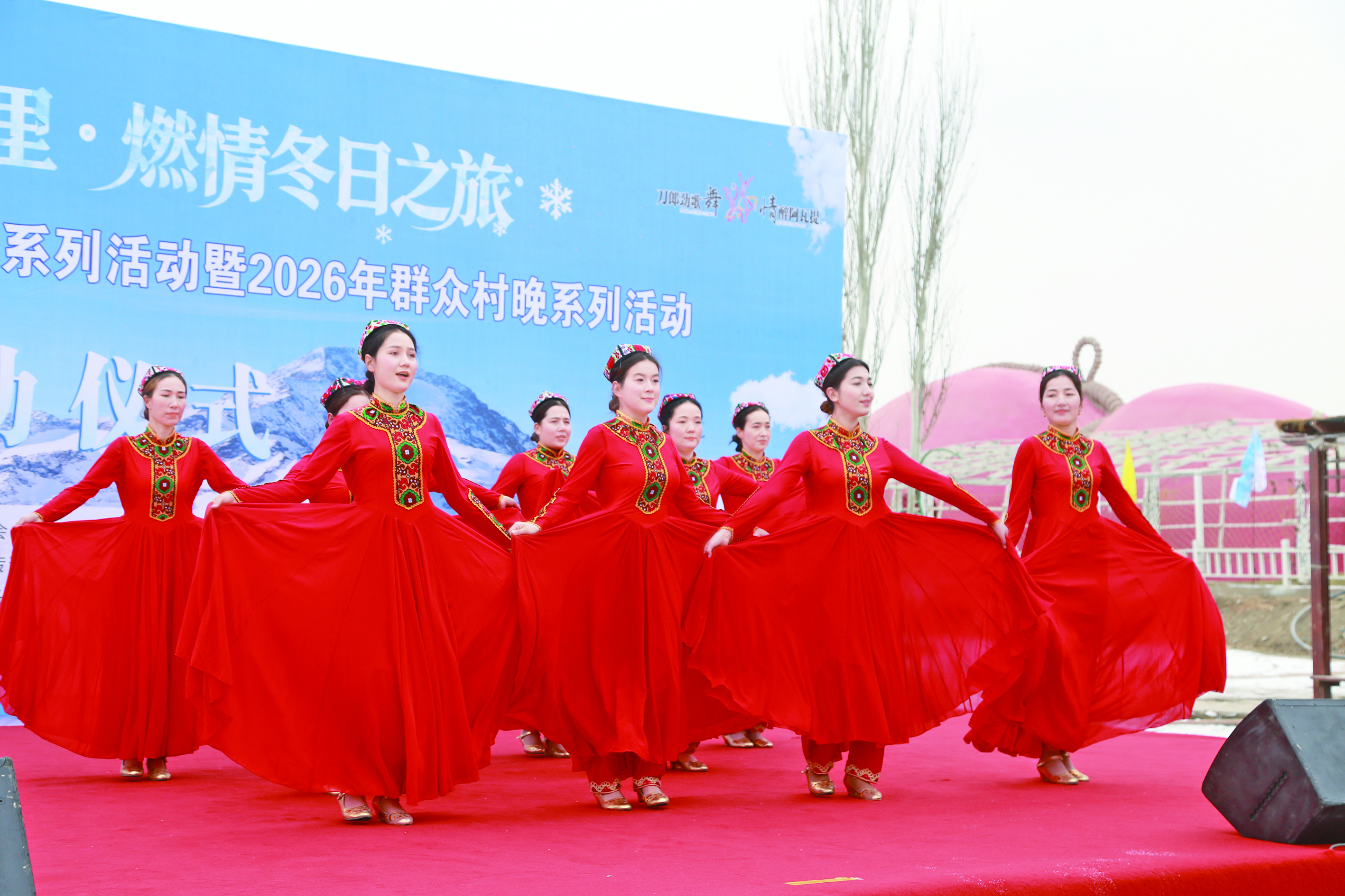 2025年12月31日,阿瓦提县第七届冰雪文化旅游季系列活动暨2026年群众村晚系列活动启幕,演员正在表演刀郎麦西热甫。 通讯员 包良廷 摄