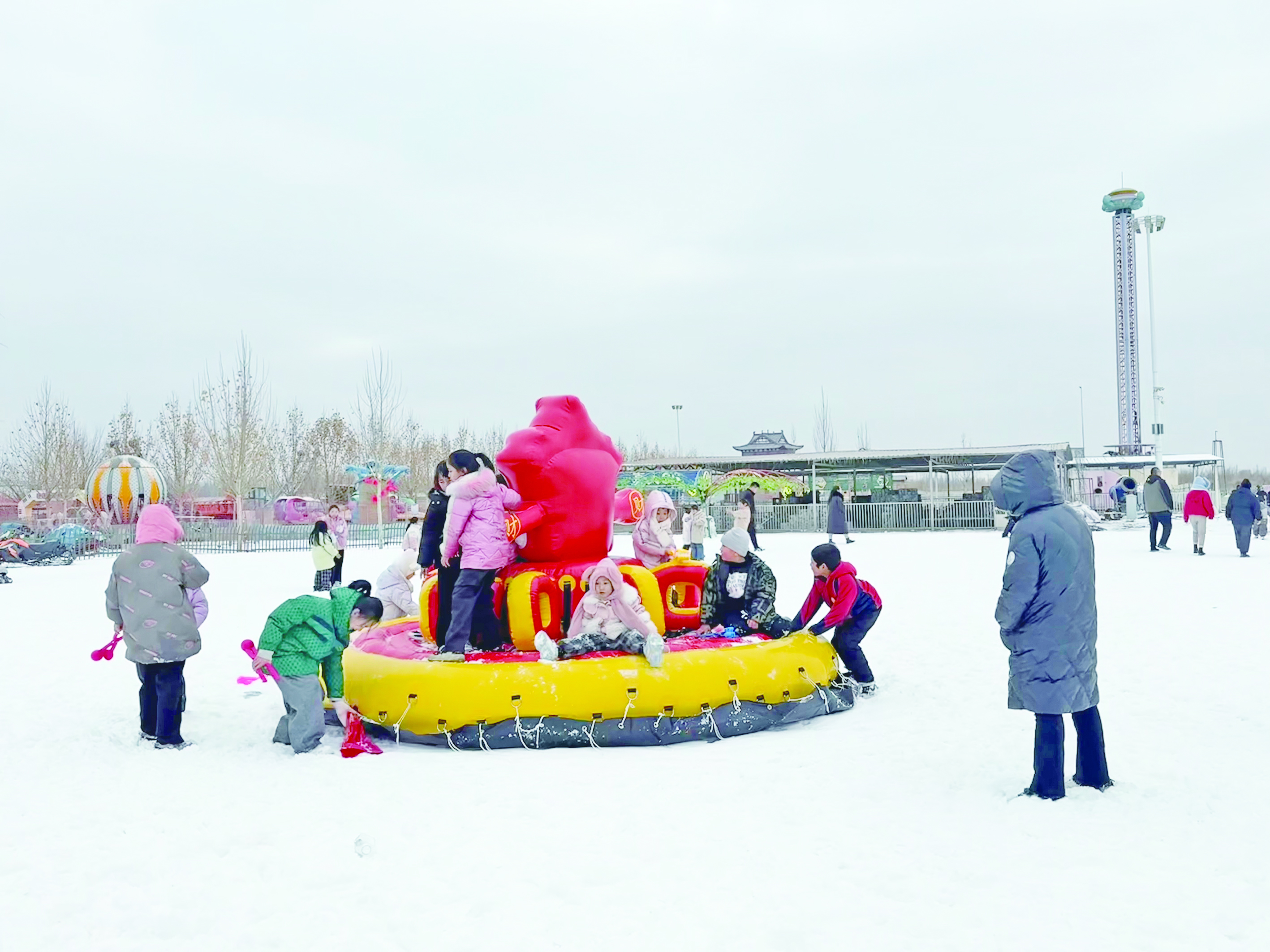 2025年12月27日,位于沙雅县雁鸣湖公园的恒瑞游乐场人头攒动,游客穿梭往来,尽享冰雪乐趣。 通讯员 祖丽皮耶·艾麦尔 摄