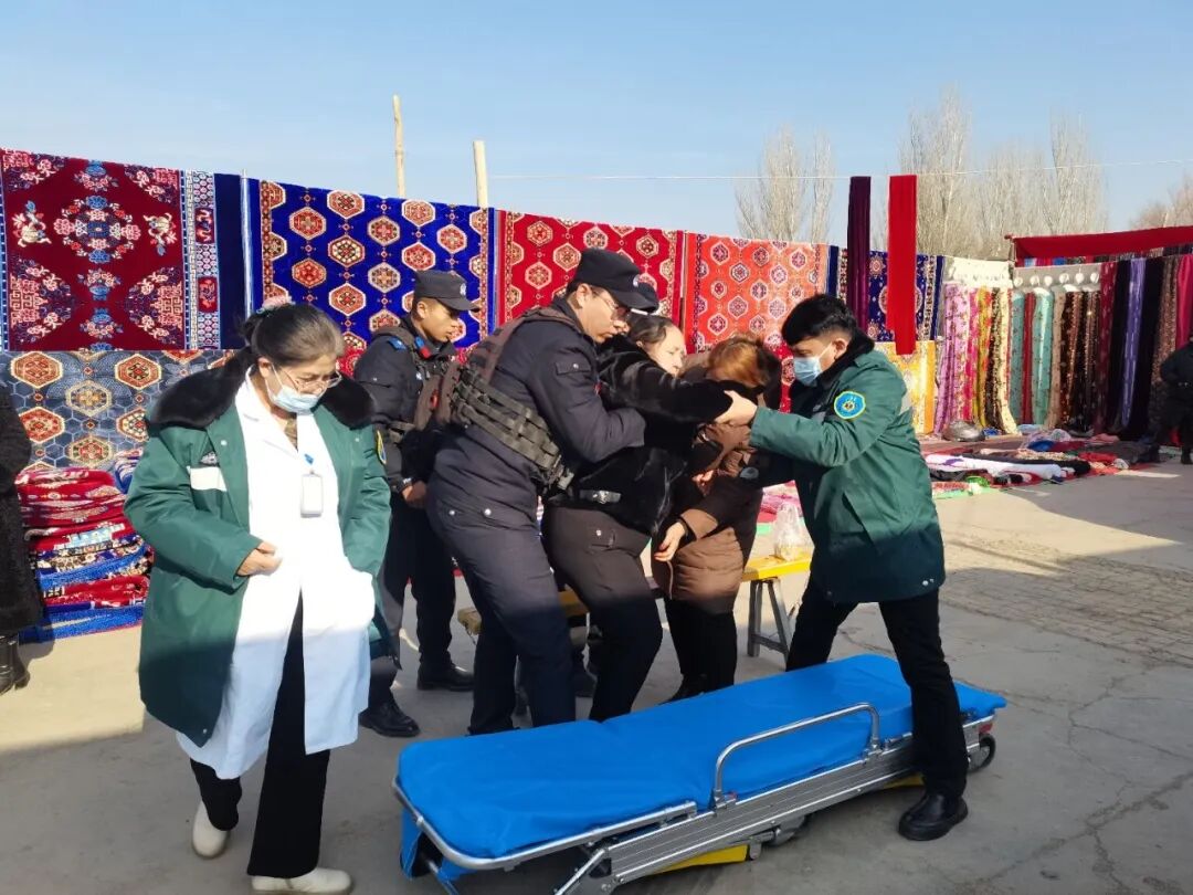 近日,库车市公安局伊西哈拉镇派出所民警在辖区集市开展日常巡逻时,突遇一名群众突发不适晕倒在地,情况十分紧急。