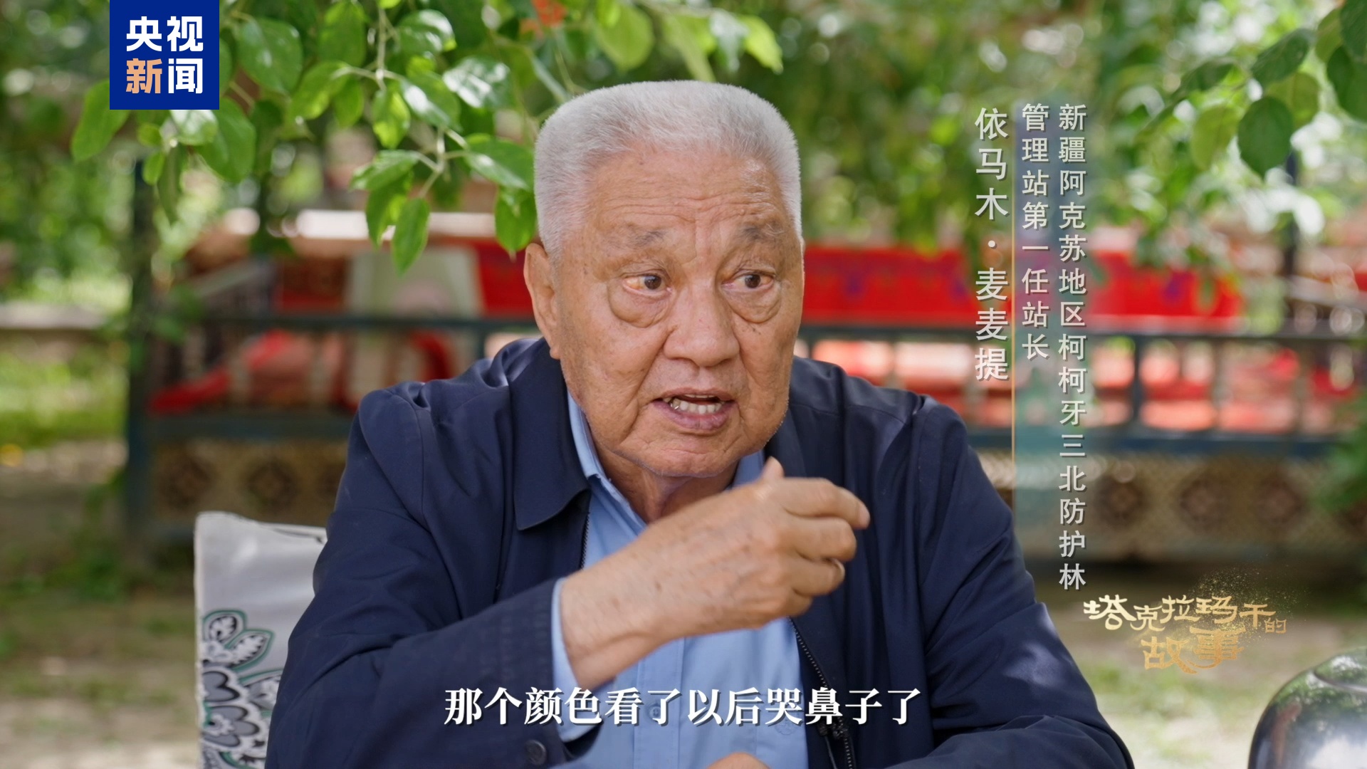 80岁的依马木·麦麦提是阿克苏地区柯柯牙林管站第一任站长。直到今天,他还能找到当年为植树挖的水渠。