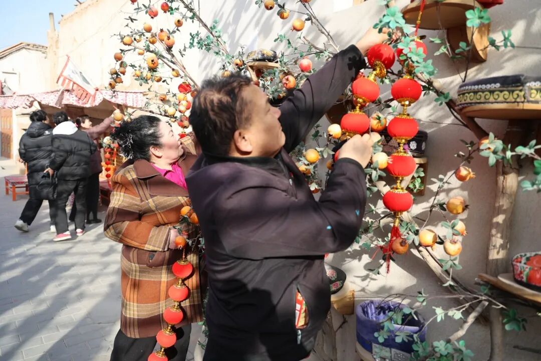 2月3日,库车市热斯坦历史文化街区工作人员悬挂红灯笼、张贴生肖贴画等装饰,将街道装点得喜气洋洋。通讯员 王红丽 摄
