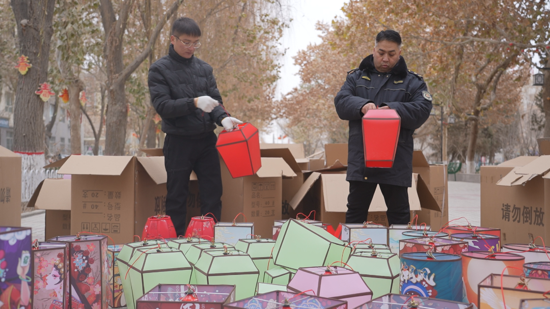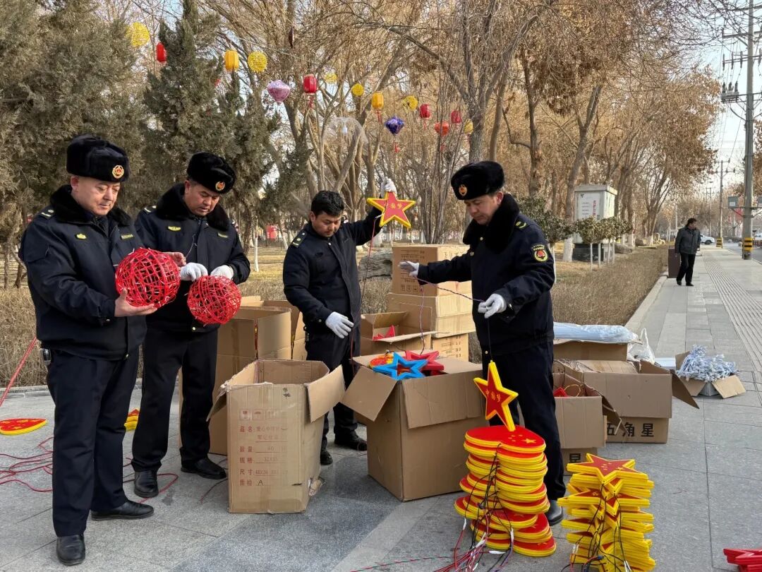 2月3日,沙雅县城市管理部门工作人员在城区主次干道、公园广场等地打造节日景观,营造欢乐喜庆的节日氛围。通讯员 祖丽皮耶·艾麦尔 摄