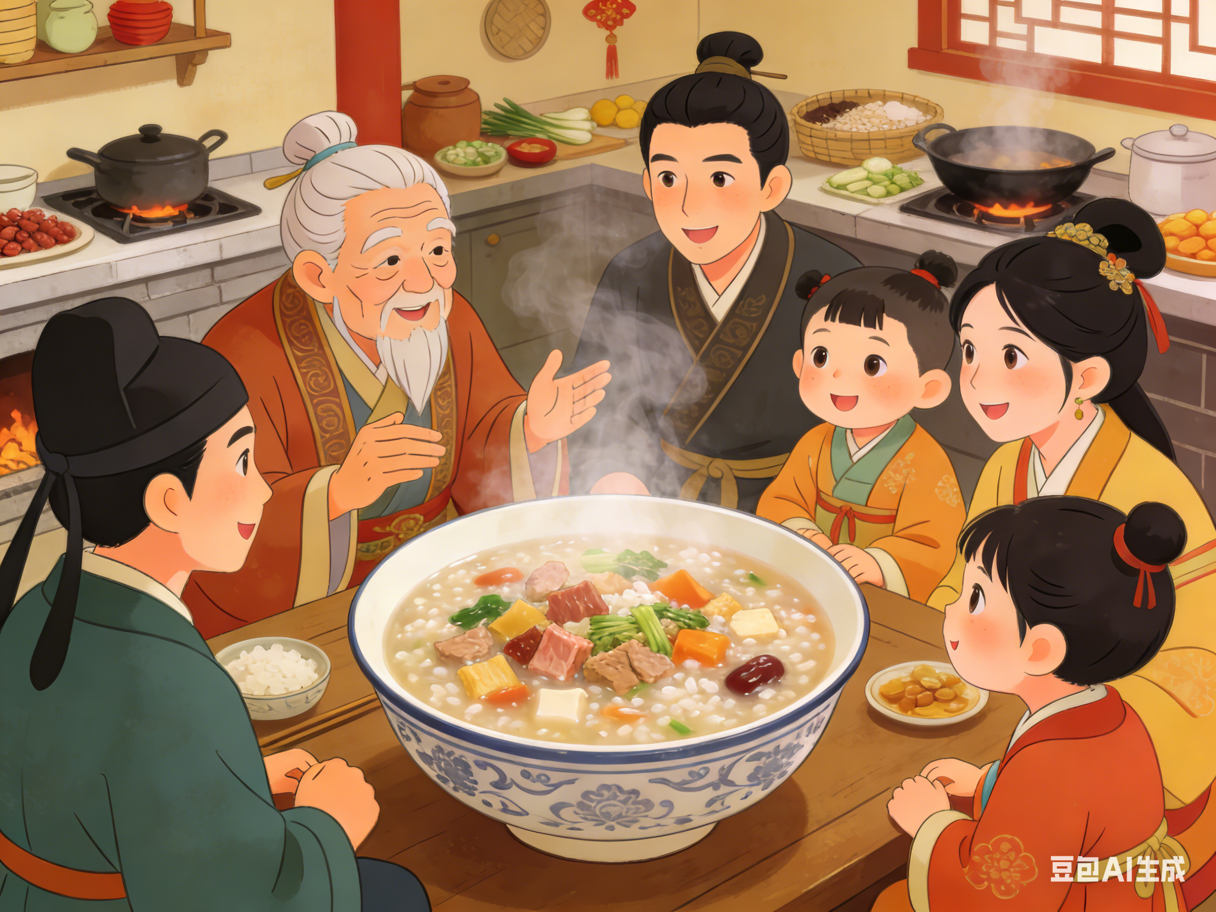 取用七种不同的肉和菜混合煮成粥