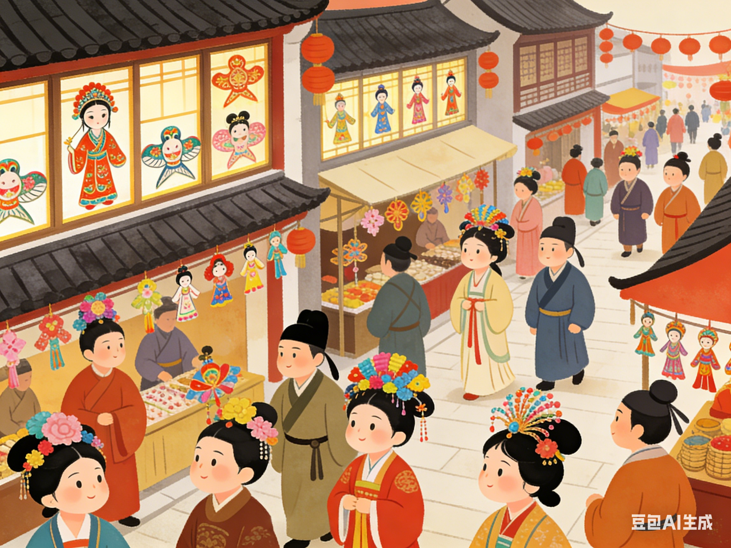 是用五彩丝织品、彩纸