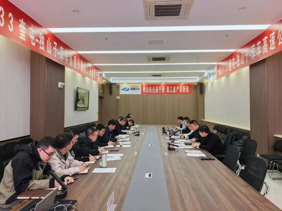 2月26日,在奎独库高速公路项目库车段建设现场,建设者们进行复工动员,明确年度目标任务、节点计划与保障措施,并对安全质量、技术创新等重点工作提出要求。