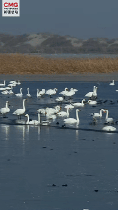 迎来数百只国家二级保护动物白天鹅