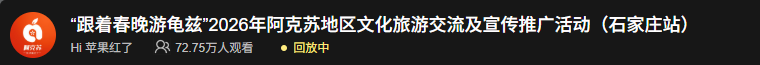 相聚石家庄 携手向未来!125万网友共同见证阿克苏文旅推介活动