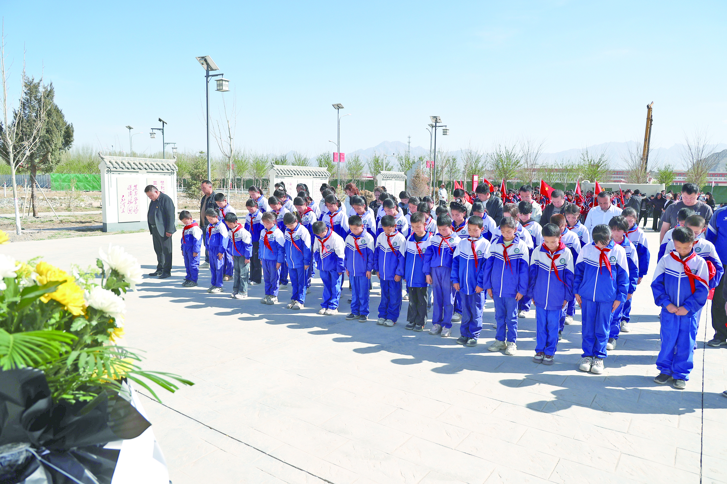 4月2日,乌什县亚科瑞克乡中心小学师生在戍边文化广场祭奠英烈。 通讯员 外力·克依木 摄