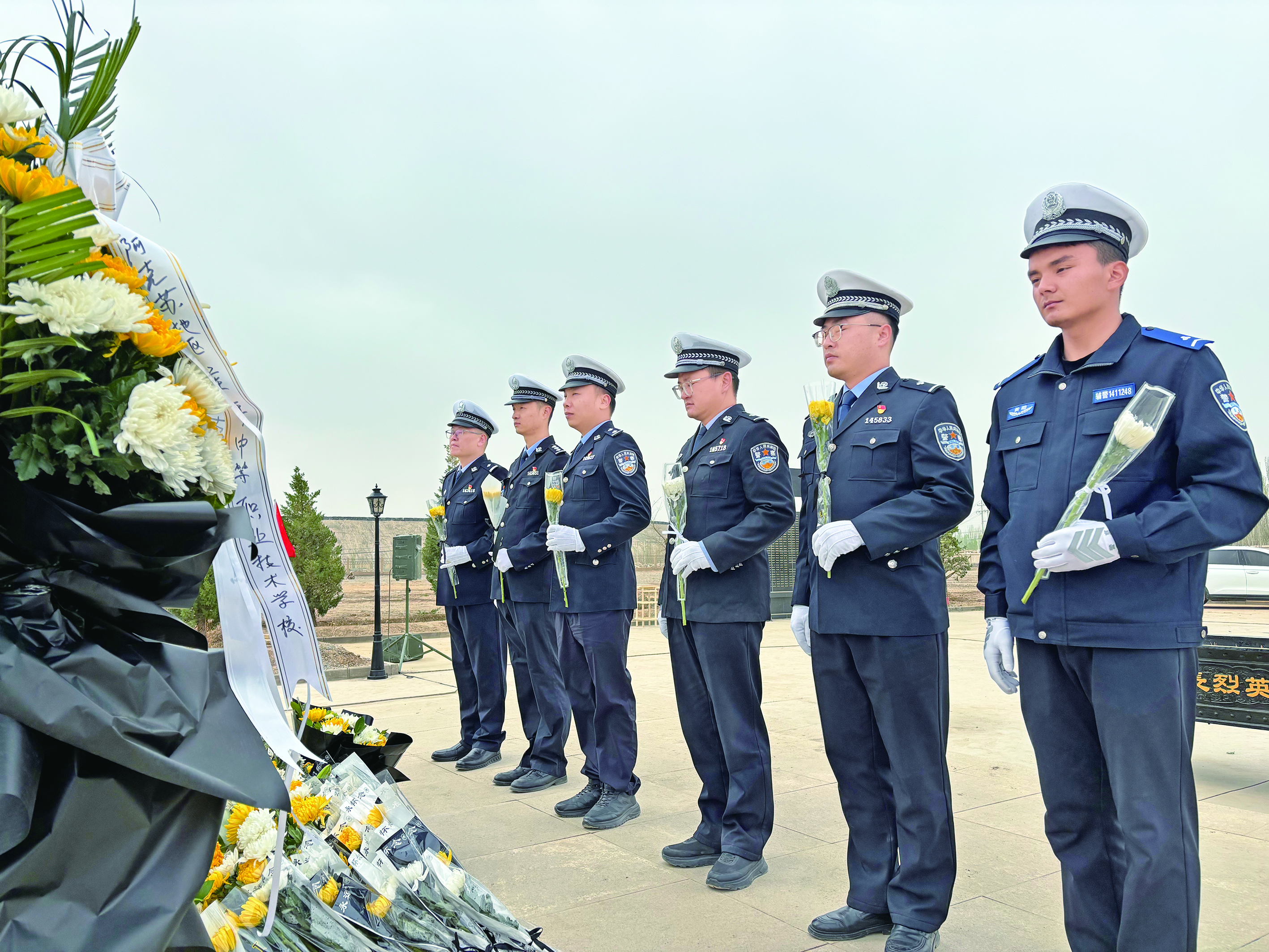 4月3日,新和县公安局交通管理大队组织民辅警走进烈士陵园开展祭扫活动。 通讯员 阿不都沙拉木·热西提 摄