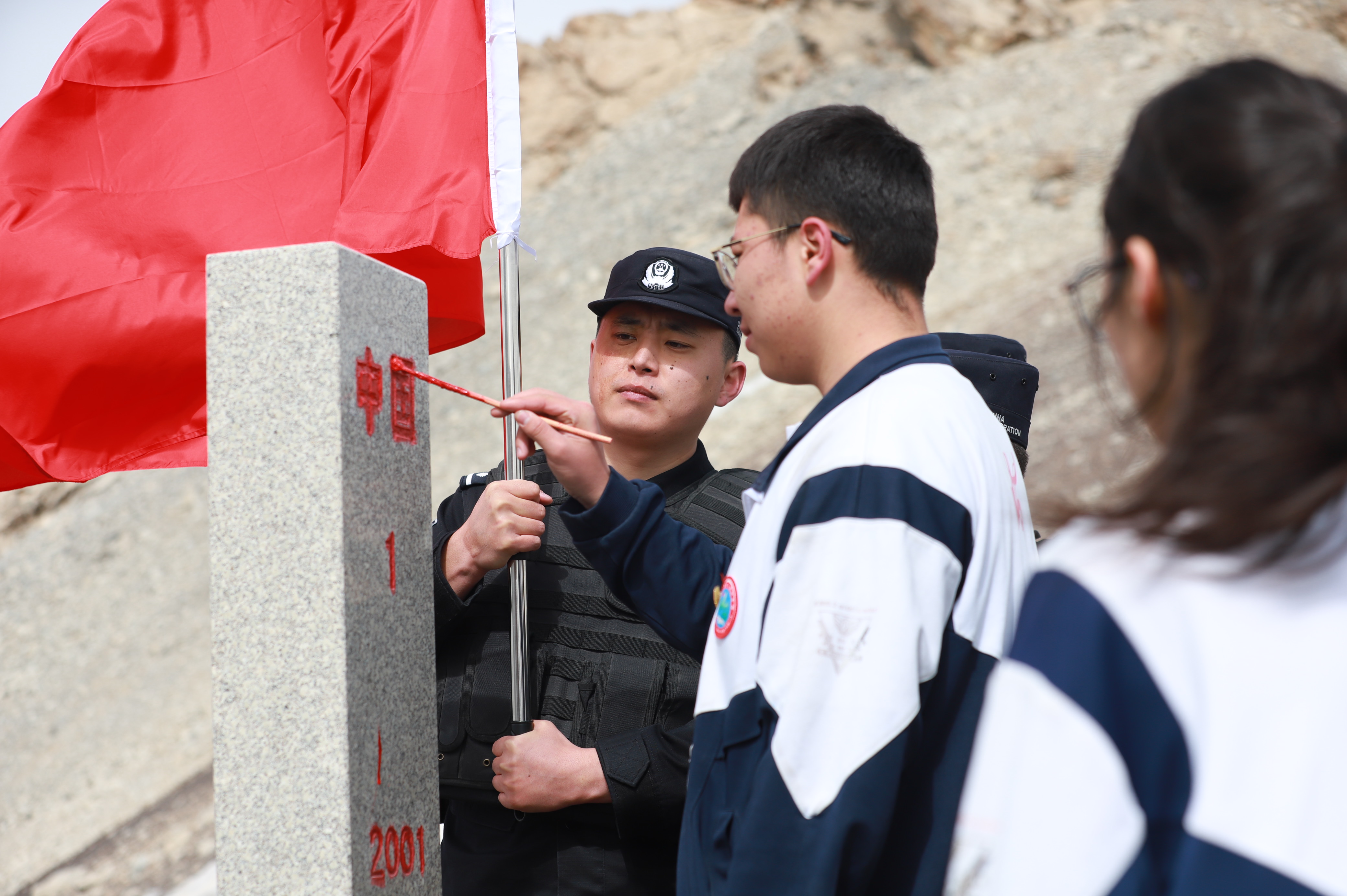 中吉一号界碑前,阿克苏边境管理支队阿克青边境派出所联合温宿县第二中学,开展了一场特殊的实践课。师生们手持画笔,一笔一划为界碑描红,鲜红的“中国”二字在阳光下熠熠生辉。沿着崎岖的巡边路徒步体验,学生们深刻体会到“哪有什么岁月静好,只不过是有人替你负重前行”。把课堂搬到边境线,让国土意识在亲身体验中深深烙印。参与师生纷纷表示,要将国家安全牢记心间,扛起维护国家安全的青年责任。