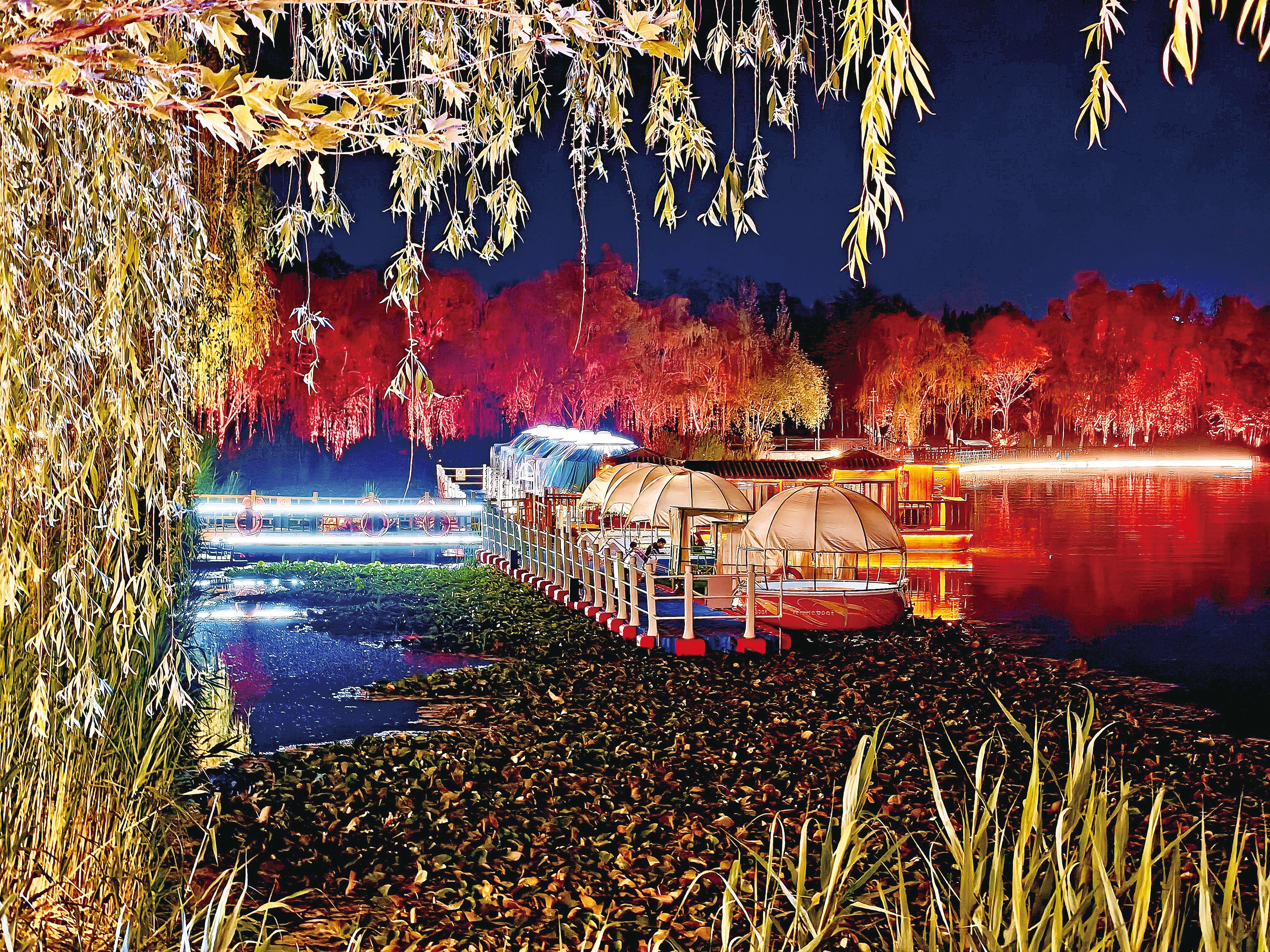 4月25日,阿克苏市多浪外滩夜市景色迷人。通讯员 艾则孜·沙木沙克 摄