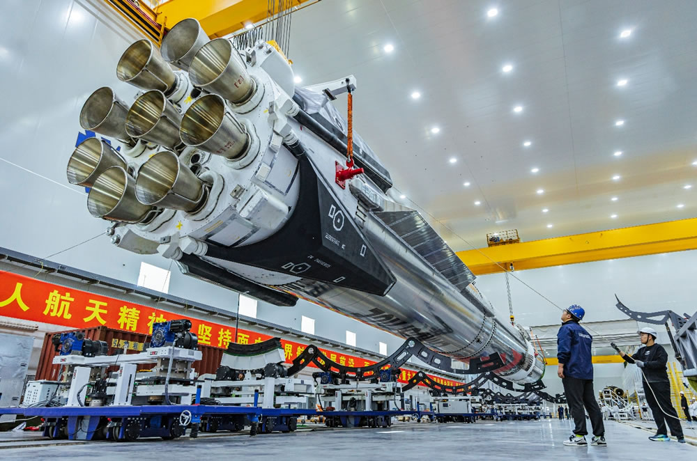 朱雀三号是我国面向大型星座组网任务,自主研制的一款大运力、低成本、可重复使用的液体运载火箭,可在执行轨道发射任务后自主高精度返回,在回收场实现软着陆并重复使用。(刘诗瑶)