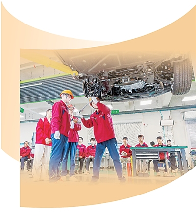山东水利技师学院实训中心,学生正进行整车维修和保养操作。 翟慎安摄