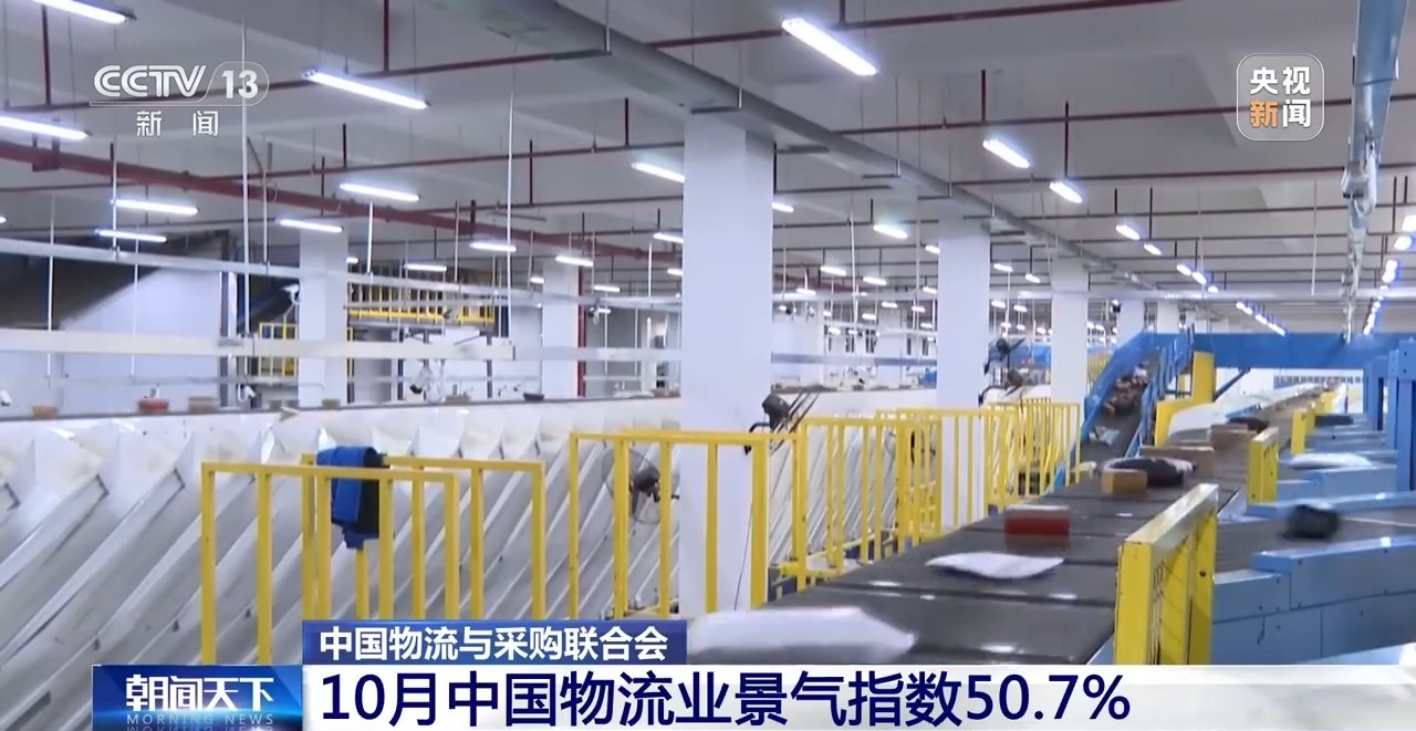 10月份中国物流业景气指数为50.7%,环比回落0.5个百分点。物流业务总量指数虽有小幅回调,但总体需求保持扩张。