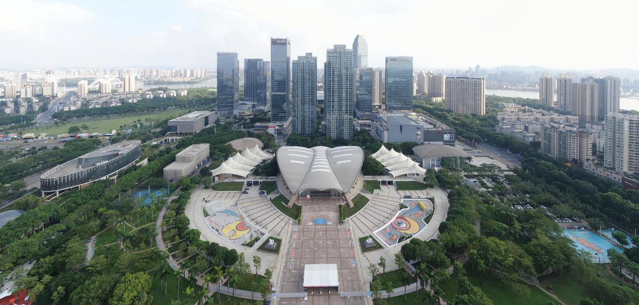 ↑深圳市光明区虹桥公园(10月25日摄,无人机照片)。全运会自由式小轮车比赛在这里举行。新华社记者 梁旭 摄