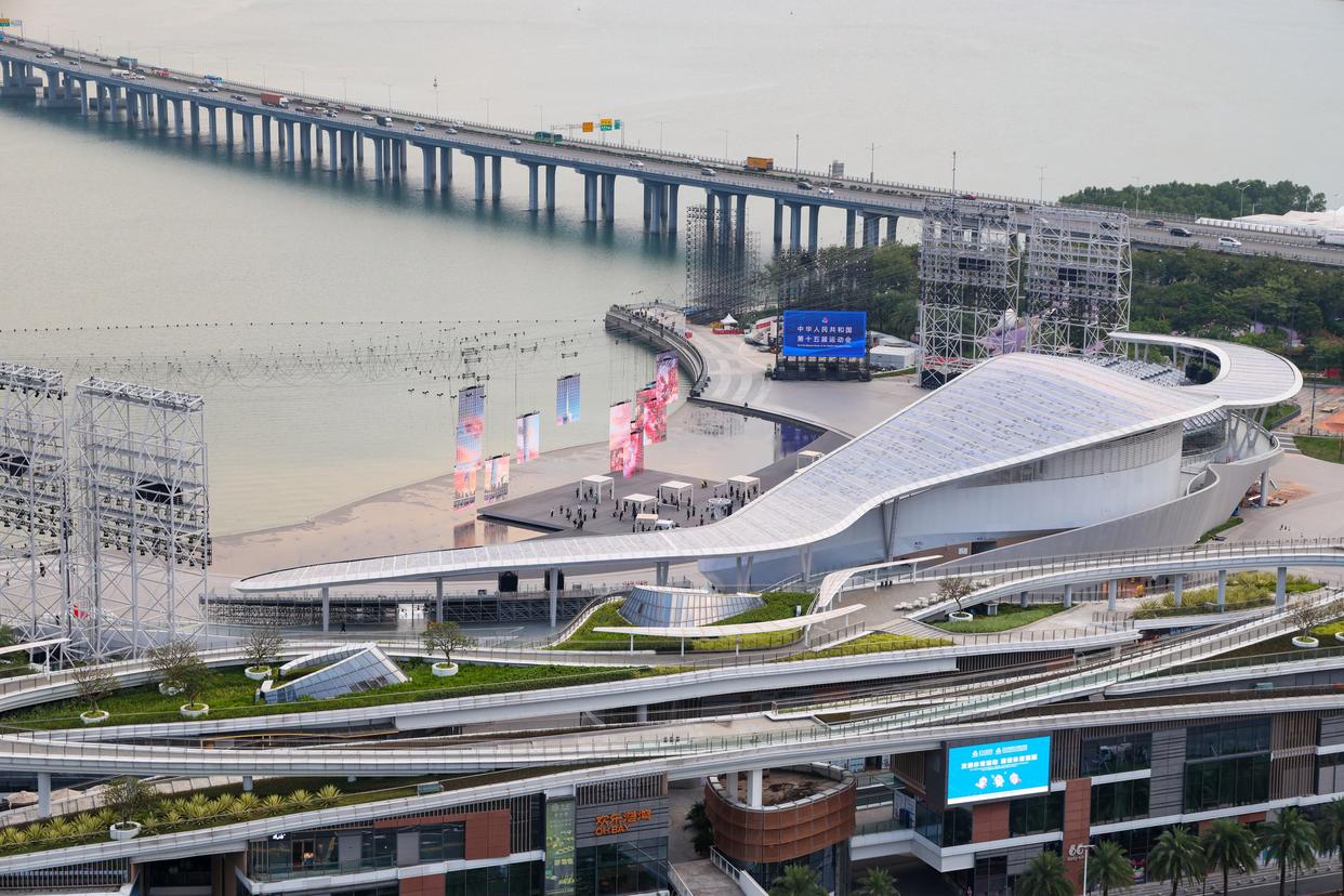 ↑广东珠海横琴国际网球中心(10月18日摄,无人机照片)。全运会网球比赛在这里举行。新华社记者 邓华 摄