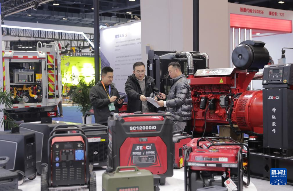 11月18日,观众在2025中国国际应急管理展览会泽川动力展位参观。新华社记者 郭昱 摄