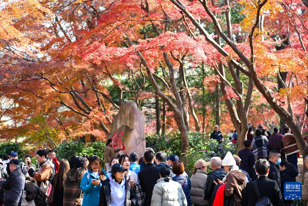 12月7日,游人在江苏南京中山植物园观赏枫叶。新华社发(杨素平摄)