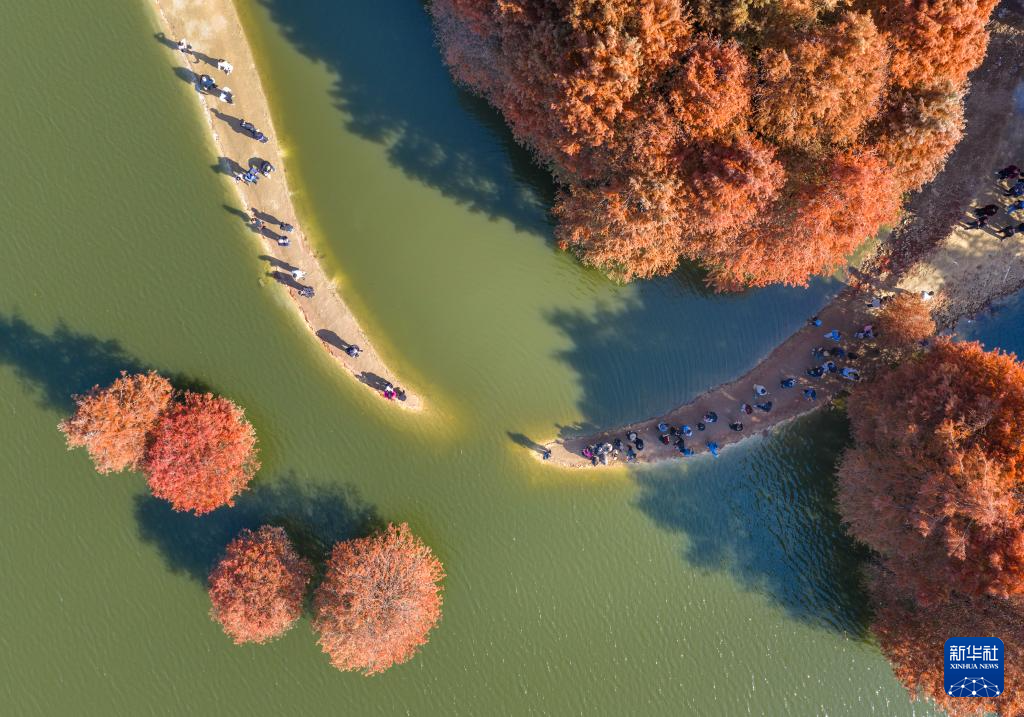 12月7日,市民在江苏省海安市上湖风景区游玩。新华社发(顾彬斌摄)
