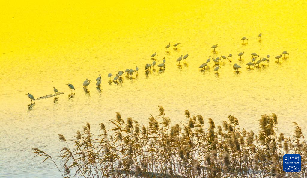 12月15日,群鸟在江苏兴化里下河国家湿地公园栖息(无人机照片)。新华社发(周社根摄)