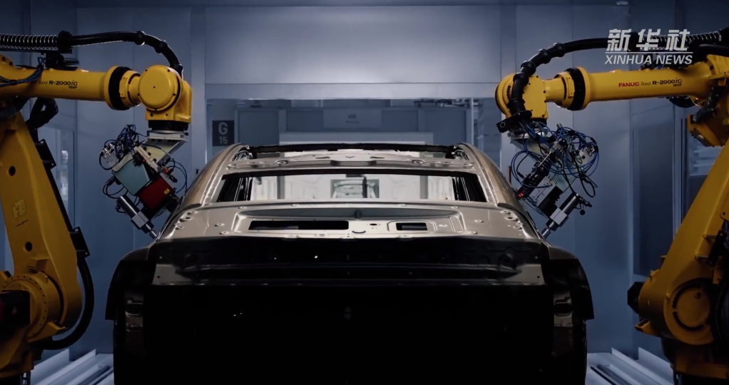 这是位于合肥市肥西县的江淮汽车尊界超级工厂内的自动化生产线。视频截图