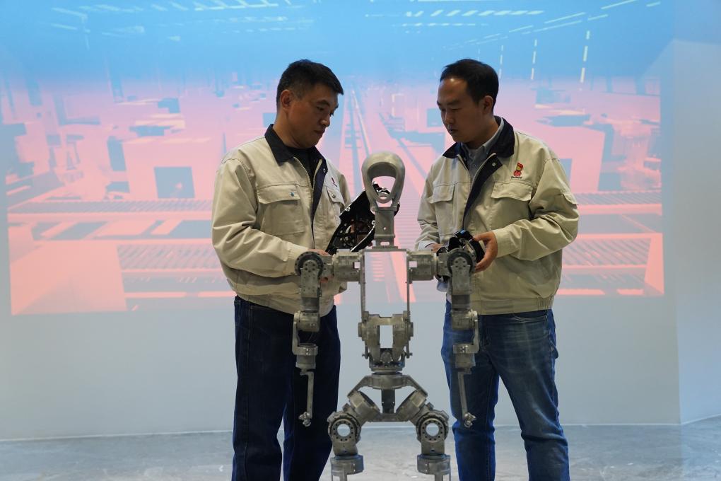 中信戴卡公司技术人员在组装机器人骨骼产品。王继军 摄