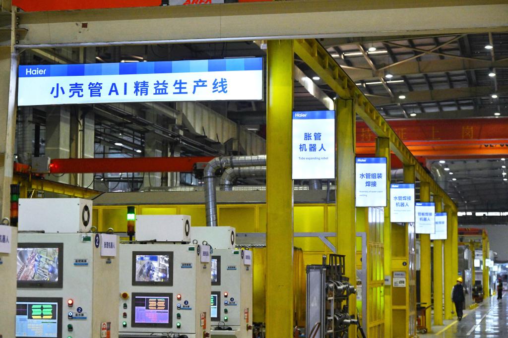 图为青岛海尔中央空调互联工厂内一条正在运转中的AI智能生产线。新华社记者 李紫恒 摄