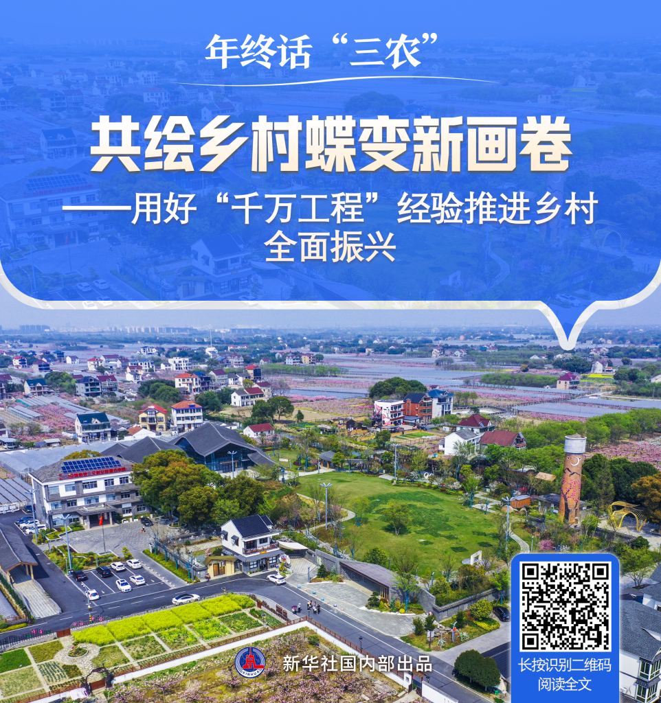 民族要复兴,乡村必振兴。“千村示范、万村整治”工程,从农村环境整治入手,由点及面、迭代升级,20多年来持续努力造就了万千美丽乡村,造福了万千农民群众。如今,“千万工程”蕴含的发展理念、工作方法和推进机制,不断绘就农业强、农村美、农民富的崭新画卷。