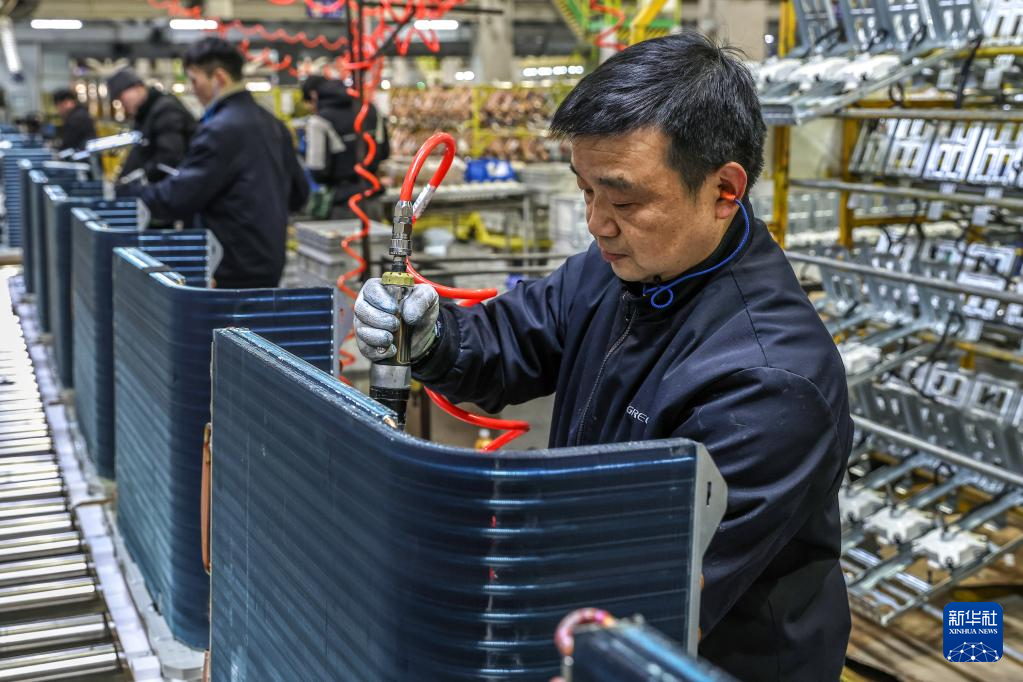 1月29日,在江苏省南京江宁高新技术产业开发区,工人在格力电器(南京)有限公司生产线上忙碌。新华社发(杨素平摄)