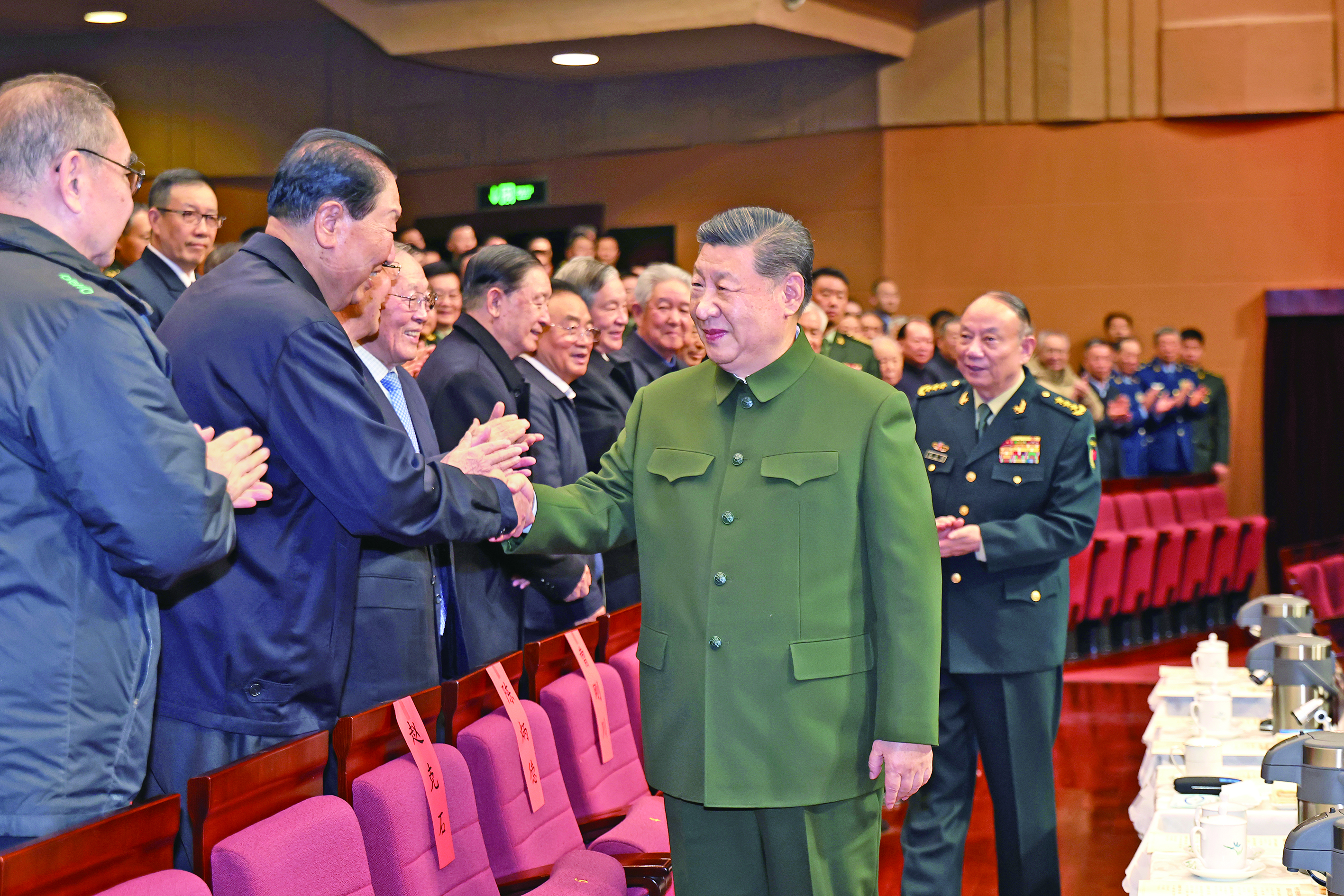 下午4时许,习近平来到老同志中间,全场响起热烈掌声。习近平同大家亲切交流、互致问候,关切询问他们的身体和生活情况,共同回顾过去一年党、国家和军队事业走过的不平凡历程、取得的重大成就。老同志们一致表示,要更加紧密地团结在以习近平同志为核心的党中央周围,坚持以习近平新时代中国特色社会主义思想为指导,深入贯彻习近平强军思想,深刻领悟“两个确立”的决定性意义,坚决做到“两个维护”,贯彻军委主席负责制,弘扬光荣传统、永葆政治本色,坚定信念、勇毅前行,为如期实现建军一百年奋斗目标、高质量推进国防和军队现代化作贡献。