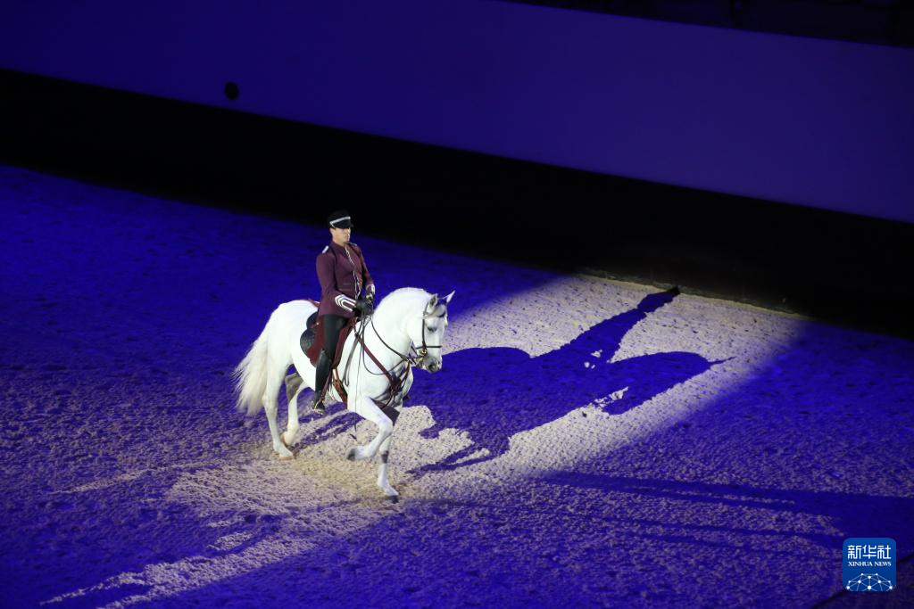 2月14日,在阿联酋首都阿布扎比,马术师在马年春节主题活动上表演。新华社记者 温新年 摄