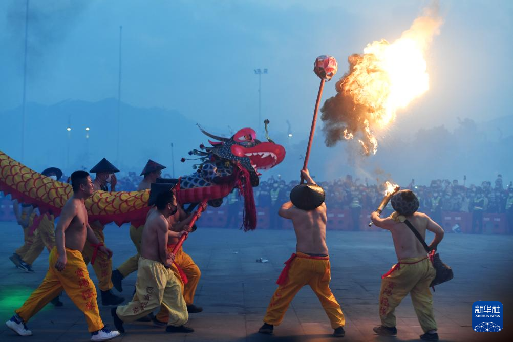2月27日,2026年宾阳炮龙节百龙舞宾州活动在广西宾阳县举行。炮龙舞新春,现场欢乐沸腾。宾阳县被誉为“中国炮龙之乡”。宾阳炮龙节是当地汉、壮民族文化融合的民间节庆,至今已有千年历史,2008年被列入国家级非物质文化遗产名录。如今,宾阳炮龙节已成为当地的文化旅游名片,每年炮龙节都吸引着各地游客前来参加。