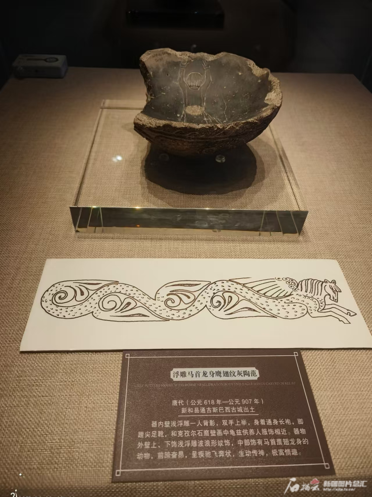 马首龙身鹰翅纹灰陶范。天山网-新疆日报记者王新红摄