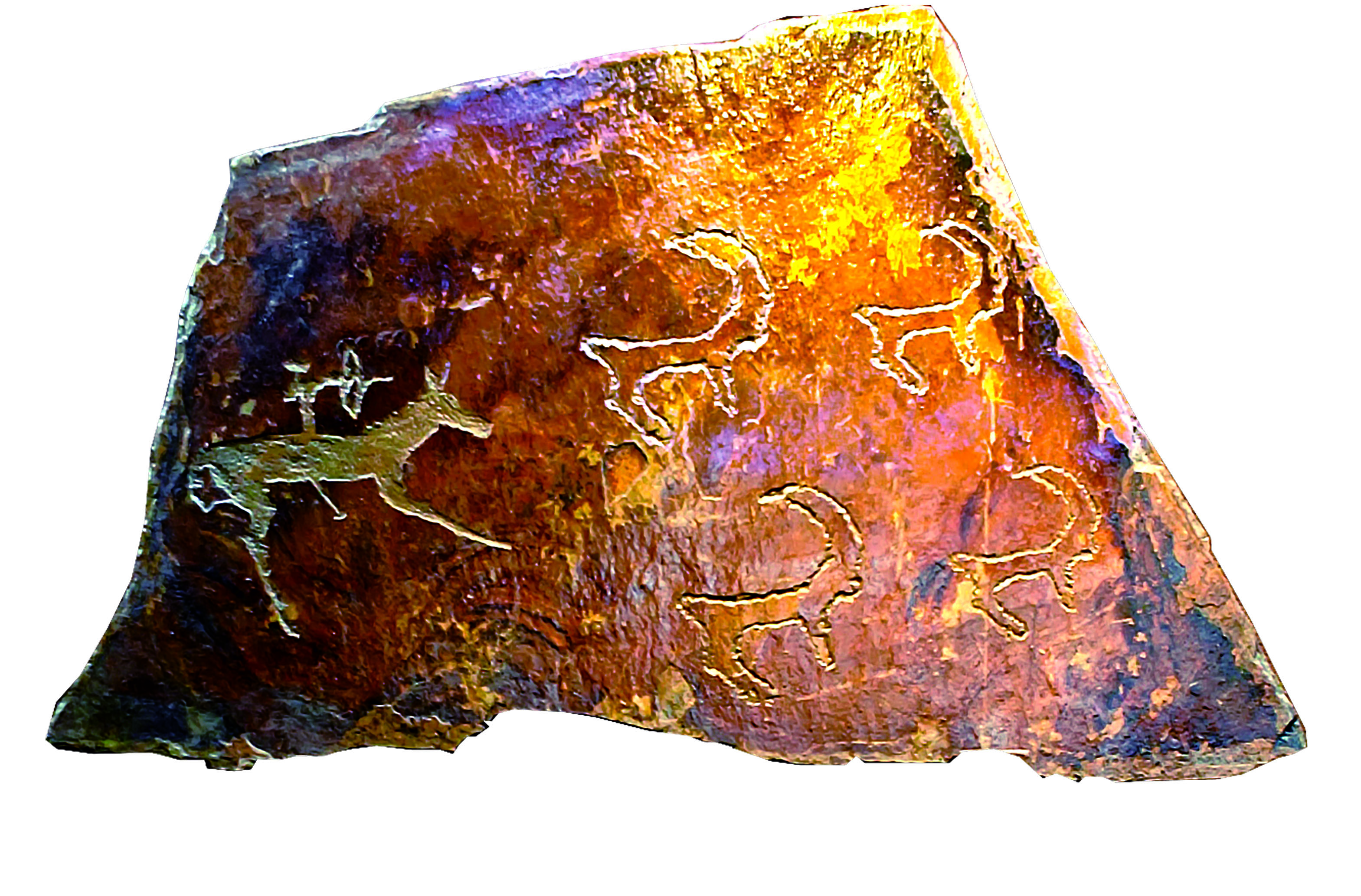 昭苏县阿合牙孜沟的骑马狩猎岩画(局部)。李林淼摄