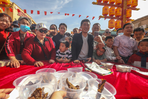现场的民俗表演更是让游客们大饱眼福。大家边吃烤肉,边欣赏歌舞表演,尽情沉浸在节日的欢乐氛围中。表演区域附近,农副产品展销区也热闹非凡,本地的农特产品、文创产品琳琅满目,吸引着游客们驻足挑选。