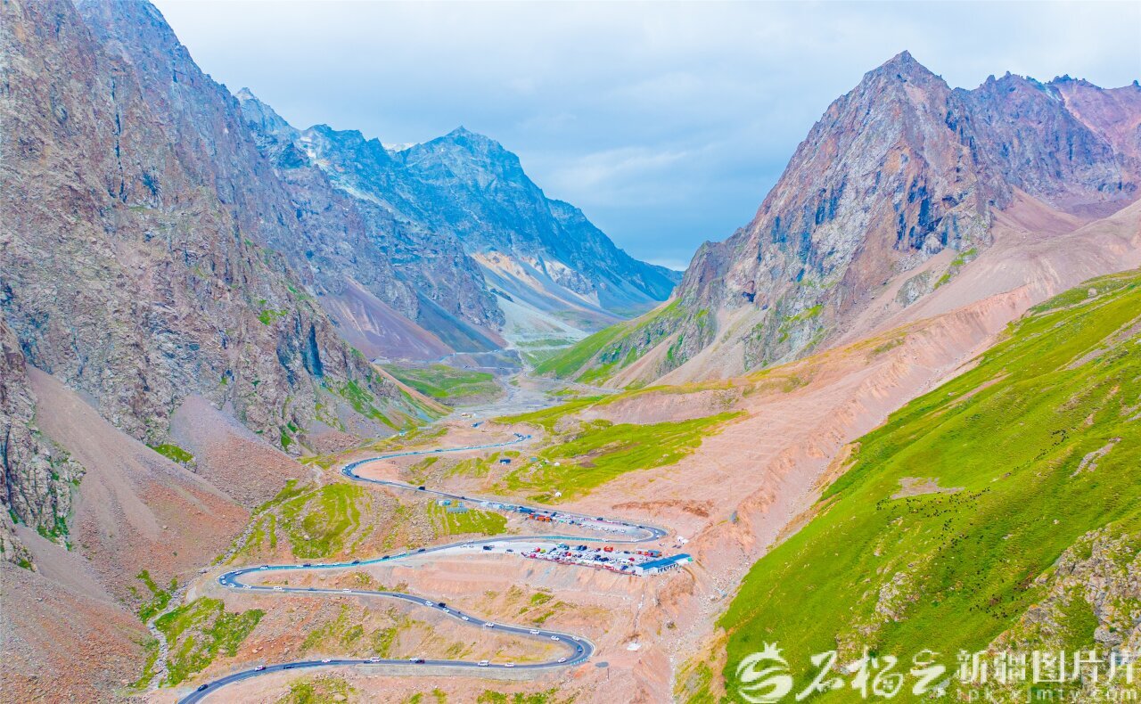 在乌苏市境内,独库公路北段乌苏段哈希勒根达坂,山路蜿蜒,宛如盘旋的巨龙,纵贯天山。汪志鹏 摄