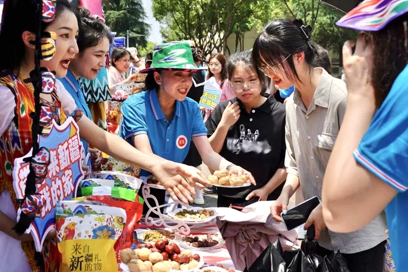 新疆医科大学“石榴籽·祖国行”民族团结实践团在南京医科大学举办特色市集巴扎(2023年5月28日摄)。